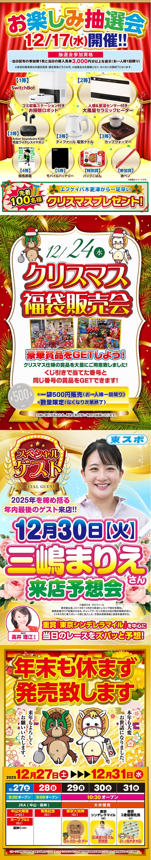 「当日購入の3,000円分以上の馬券」提示で参加できます。